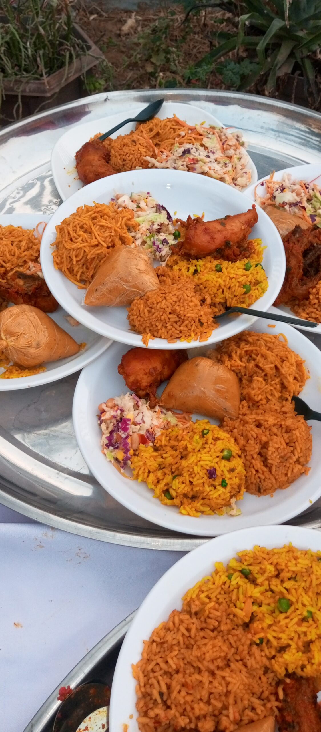 Ayzan Snacks and Cuisine offers catering services for all kinds of social events like dinner parties, wedding ceremonies, seminar programs, etc. Our products range from jollof/fried rice, meat pies, samosas, doughnuts, cakes, and more.